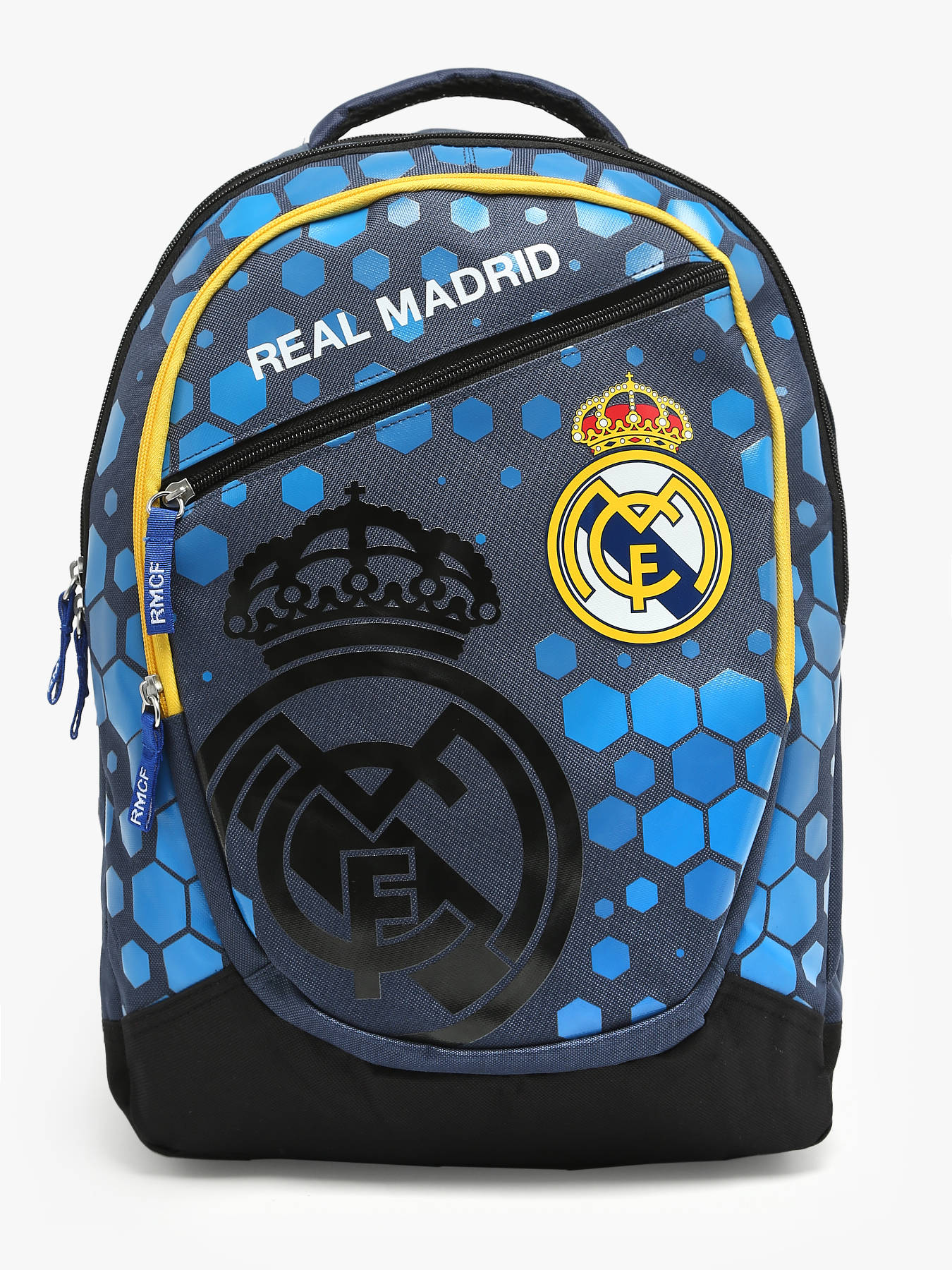 45 cm - 20 liters - 0.8 kg ~ The Real Madrid backpack is perfect for young fans aged 7 to 10 years, combining style with practicality. Made from durable polyester, it is built to last while proudly displaying the club's iconic logo. On the outside, it features two front pockets for easy access to small items and a secure zip closure. The adjustable straps ensure a comfortable fit, and the backpack can be carried by hand or on the back according to preference. Inside, two spacious compartments provide optimal organization for school supplies, from notebooks to binders. Its ability to hold A4 documents and various notebook and binder sizes makes it practical for daily use. With its design in Real Madrid colors, it will delight young supporters while meeting everyday school needs.