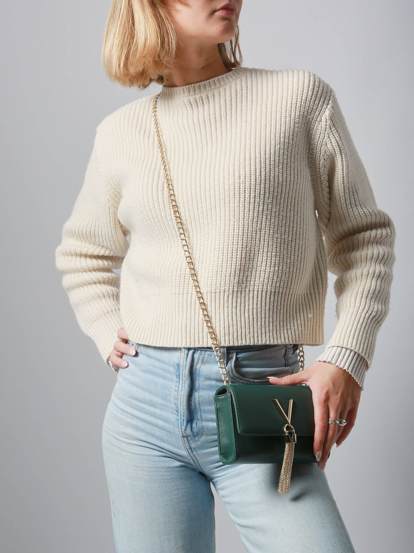 Let yourself be tempted by this bag from Valentino. Both chic and timeless, it will accompany you everywhere and will easily match all your outfits. You will easily carry it on your shoulder or across your chest, and its flap closure houses a compartment as well as a single pocket and a zip pocket. The details on the front give a rocky feel, nothing better to add a touch of pep to your outfits.