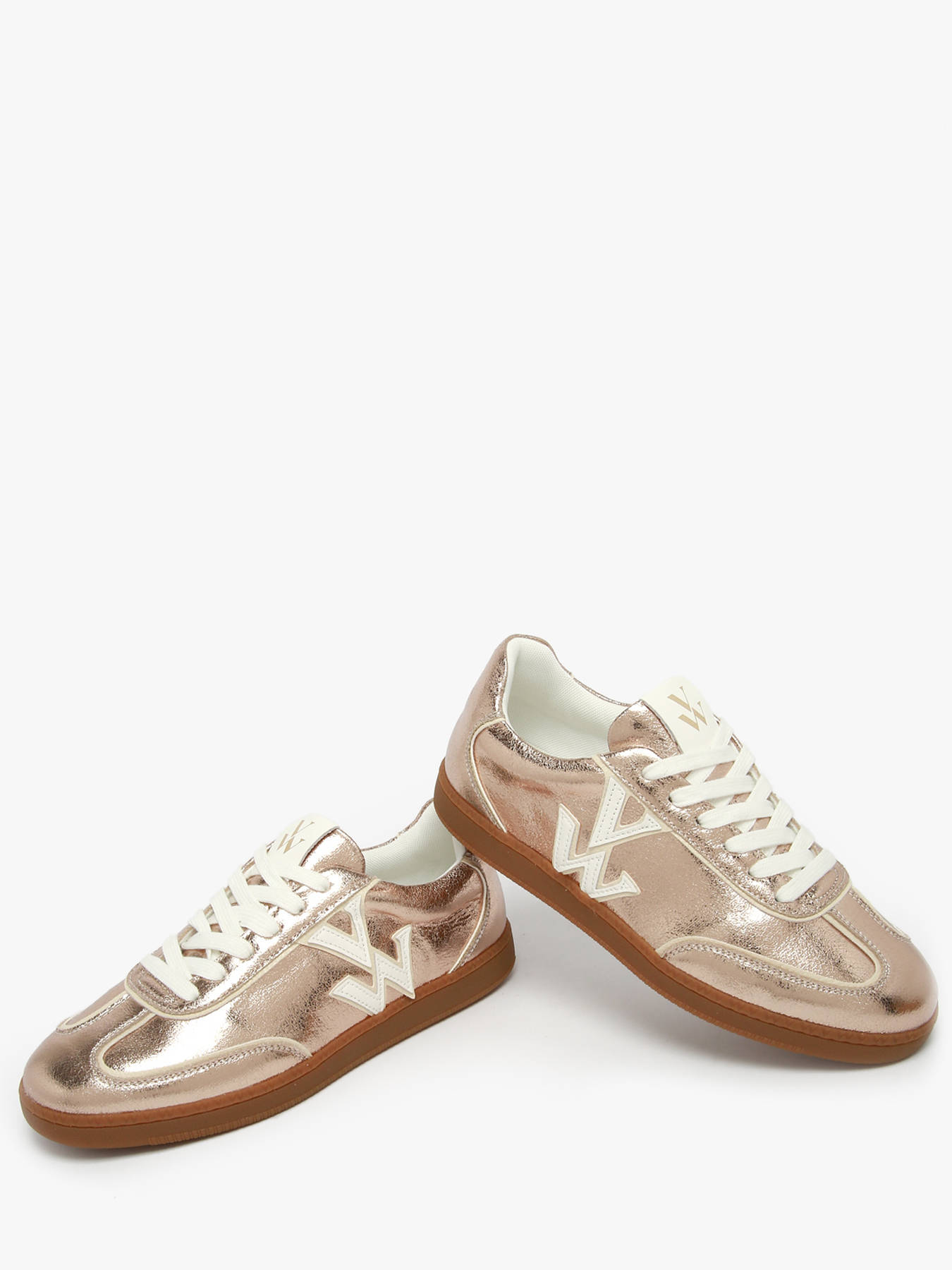 Fall for the Sarah monogram sneakers by Vanessa Wu, a perfect blend of retro style and modern comfort. Made in gold textured faux leather or dark camel split suede with a white monogram, they add elegance and originality to any outfit. Available in camel or gold, they suit every look. The removable microbead insole and slim stitched retro camel sole provide all-day comfort, support and lightness. This model fits true to size, take your usual size or go up for half sizes. Perfect for a chic yet casual style, these sneakers are a must-have from Vanessa Wu’s collection.